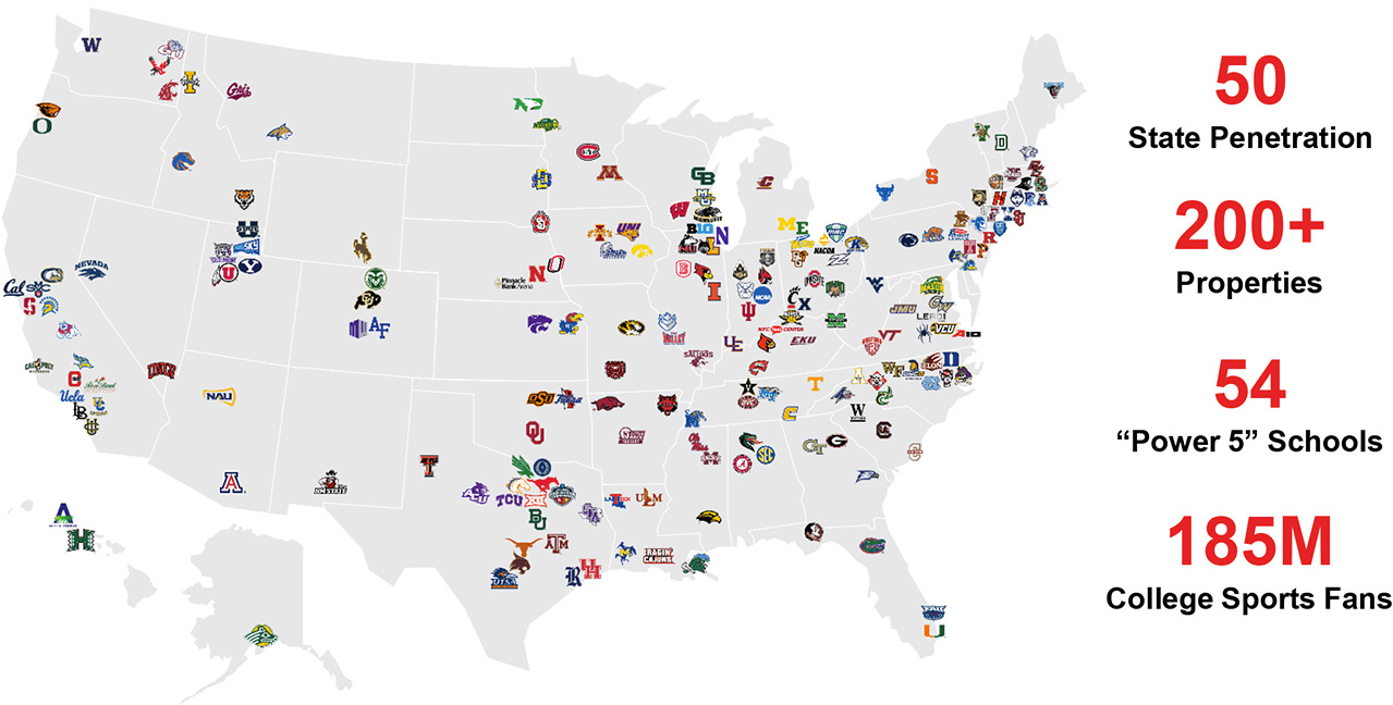 We own the rights through our university partnerships and will be part of their local broadcasts providing multiple affiliates in each market on a statewide basis. When you purchase a spot, it airs equally across all schools and markets